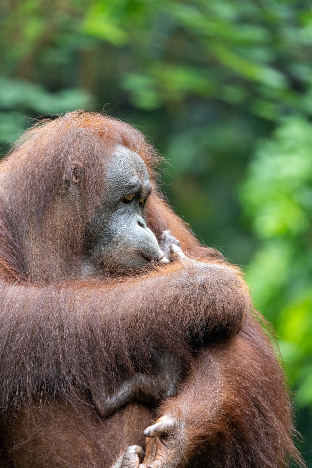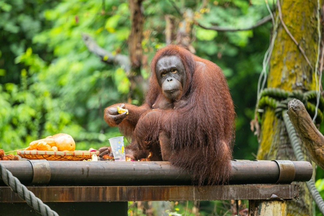红毛猩猩与大猩猩及黑猩猩一起常常被称为“人类最直系的亲属”,与人类的基因相似度高达96.4%(数据来源于WWF)。然而红毛猩猩生存环境并不乐观,已被列入IUCN红色名录的“极危”物种。面对这一挑战,长隆集团设立了灵长类研究中心,对红毛猩猩的保育、繁育、人工育幼、疾病防控动物福利以及育幼成功合群做了大量的研究和经验积累。园区还尽量还原红毛猩猩的野外生活环境,不断完善优化展区丰容设施,让红毛猩猩能够自由自在地生活。