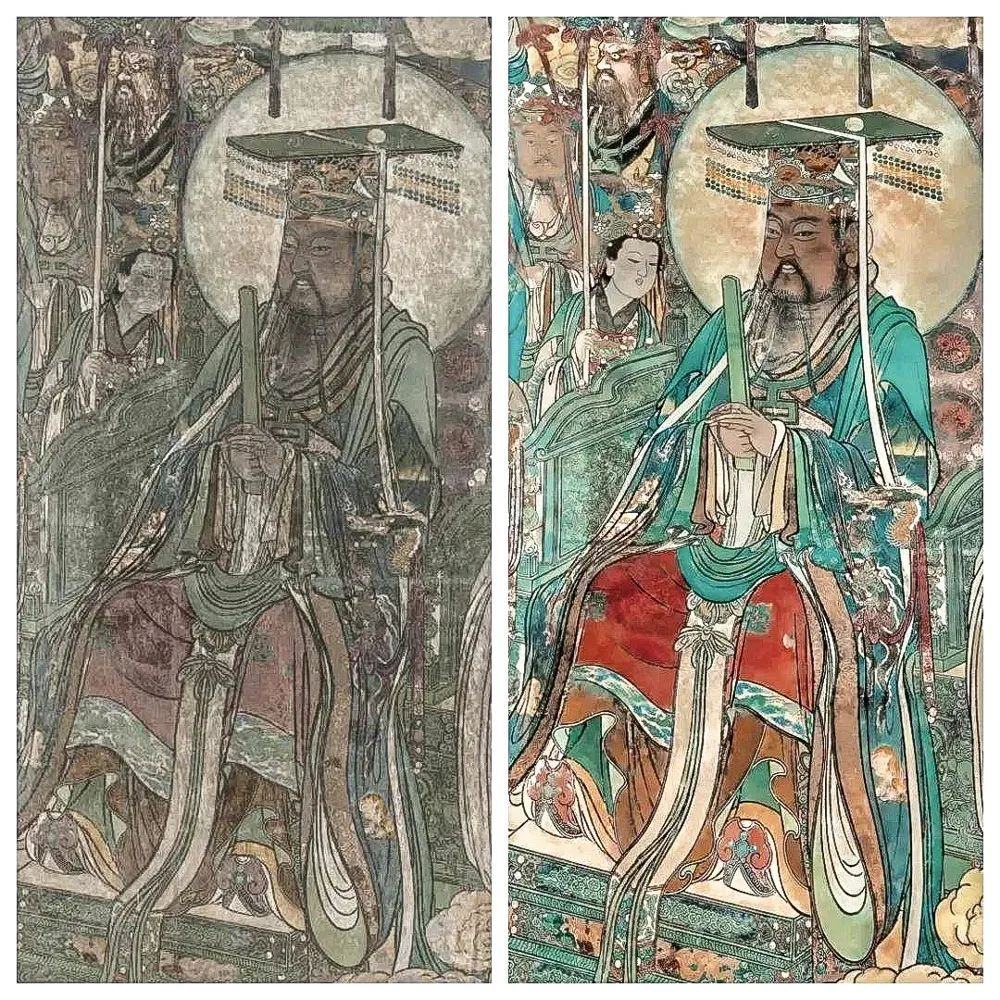 《朝元图》中玉皇大帝的AI修复前后对比图