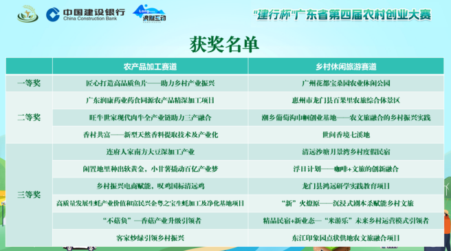 花都区三家企业脱颖而出,最终斩获三项大奖:其中“广州花都宝桑园农业休闲公园”(广州璞桑园生态旅游有限公司)一举拿下乡村休闲旅游赛道一等奖(全省第一名),将于9月中下旬代表广东省征战全国农村创业大赛;“世间香境七溪地”(广州市七溪地芳香集团有限公司)获得乡村休闲旅游赛道二等奖;广东润康药业药食同源精深加工项目(广东润康药业有限公司)获农产品加工赛道亚军。