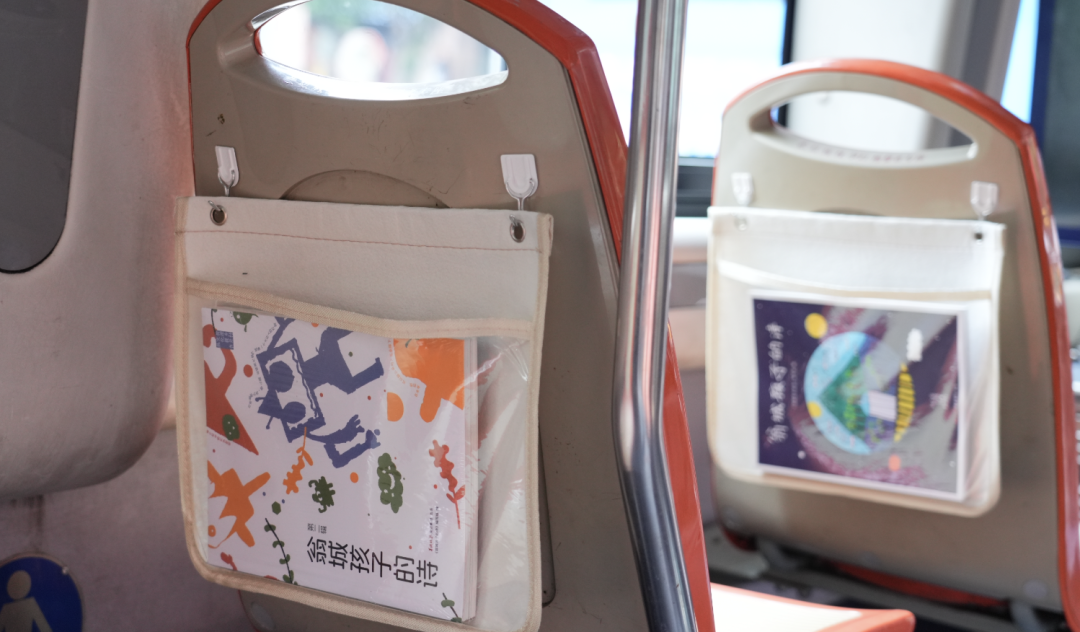 车内还有“流动书袋”,放着各类图书,让市民乘客在碎片化时间也能沉浸式阅读。在此次羊城书展上,广州巴士集团企业代表参与了“花城书房”共建点受赠书仪式并接受了赠书,这批赠书与阅读基地内的书籍,共同组成了主题车上“流动书袋”的书籍资源库,为市民提供“公交+阅读”的新体验。
