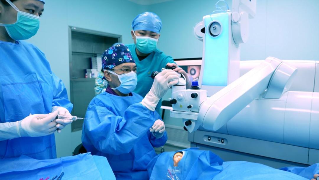 在合肥普瑞眼科医院,普瑞眼科安徽省区总院长、安徽医科大学附属第一医院眼科原主任廖荣丰教授为右眼视力仅有0.04的王先生,摘除脱位的晶状体,并将人工晶体精确、稳固悬吊于眼内。王先生来自江苏溧阳,此前其家族有5人晶状体脱位,都由廖荣丰教授主刀手术。术后王先生视力恢复良好,开心表示以后家人有眼病必须找廖教授治疗。