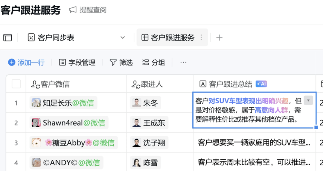 此次更新,企业微信还将AI能力深度融入更多办公模块当中,帮助企业打造更智能、更高效的社会化协作生态。团队举例全新的智能表格功能,该功能不仅能够自动跟踪任务进度、任务逾期提醒、自动生成可视化数据看板,还借助AI能力实现更多自动化智能玩法。