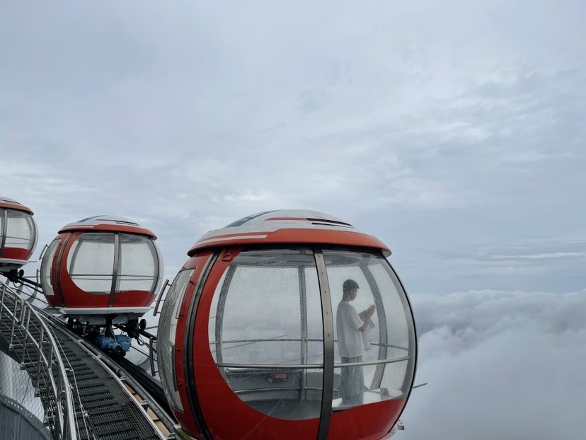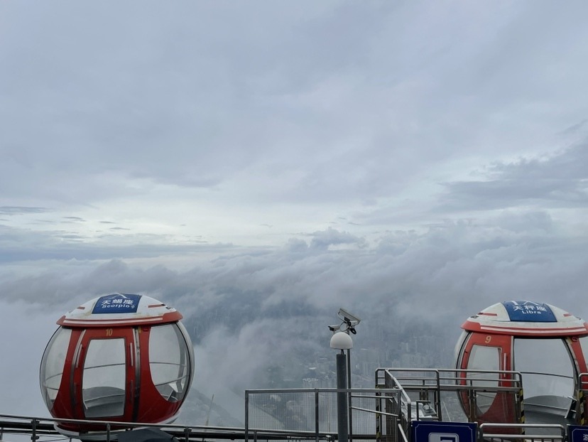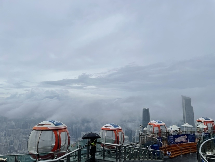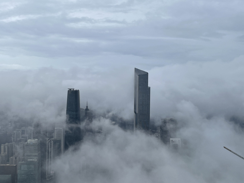 8月20日下午,羊城骤雨初歇,在广州塔450米户外观景平台俯瞰城市,云雾弥漫在建筑之间。立于云端之上,广州的磅礴气象化作美丽的水墨画卷。
