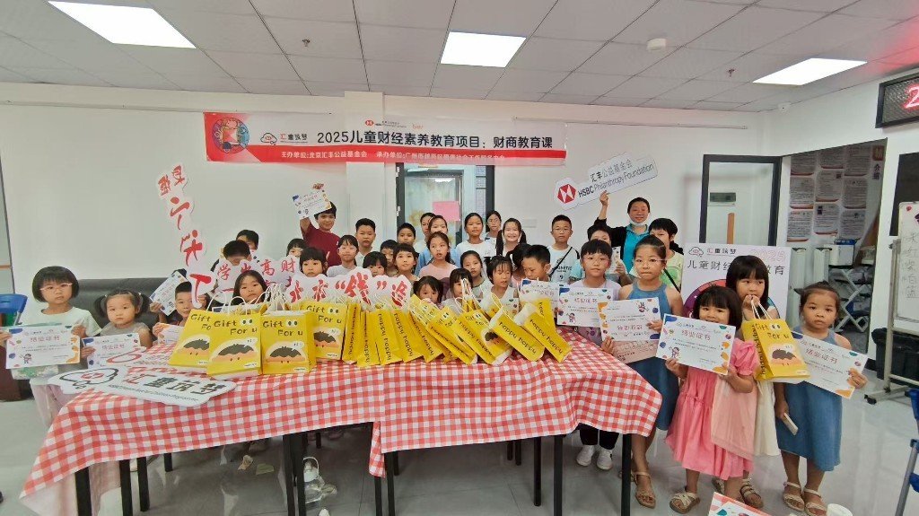 8月16-17日,由汇丰公益基金会、佰特公益指导,广州市越秀区穗青社会工作服务中心承办的“汇童筑梦-2025广州市社区儿童财商项目”落地广州市花都区炭步镇,累计吸引82名适龄儿童踊跃参与。