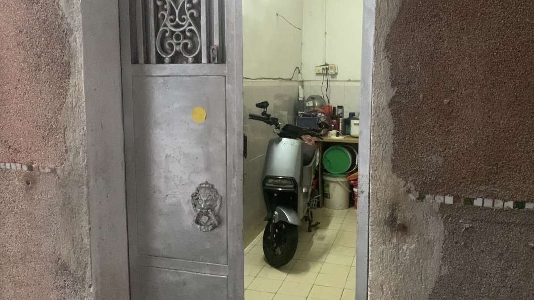 还有居民将电动自行车停放至屋内,并且在屋内充电。有的出租屋楼宇首层停满电动自行车,有的楼宇在室内设置了插座,供室内的电动自行车充电。