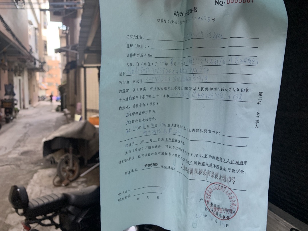 更令人担忧的是,有居民擅自搭建充电桩棚架和充电设施。在西祠大街八巷2号南侧,有人擅自搭建了一个充电桩棚架和充电设施。沙头街道办事处已经贴出《责令改正通知书》,要求违建人8月16日前拆除该违建。记者8月18日回访看到,该棚架的充电设施已经拆除,但棚架岿然不动,没有被拆除的迹象,挡道又影响街貌。