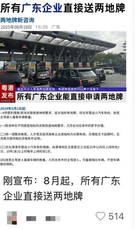 “所有广东企业直接送两地牌”系谣言