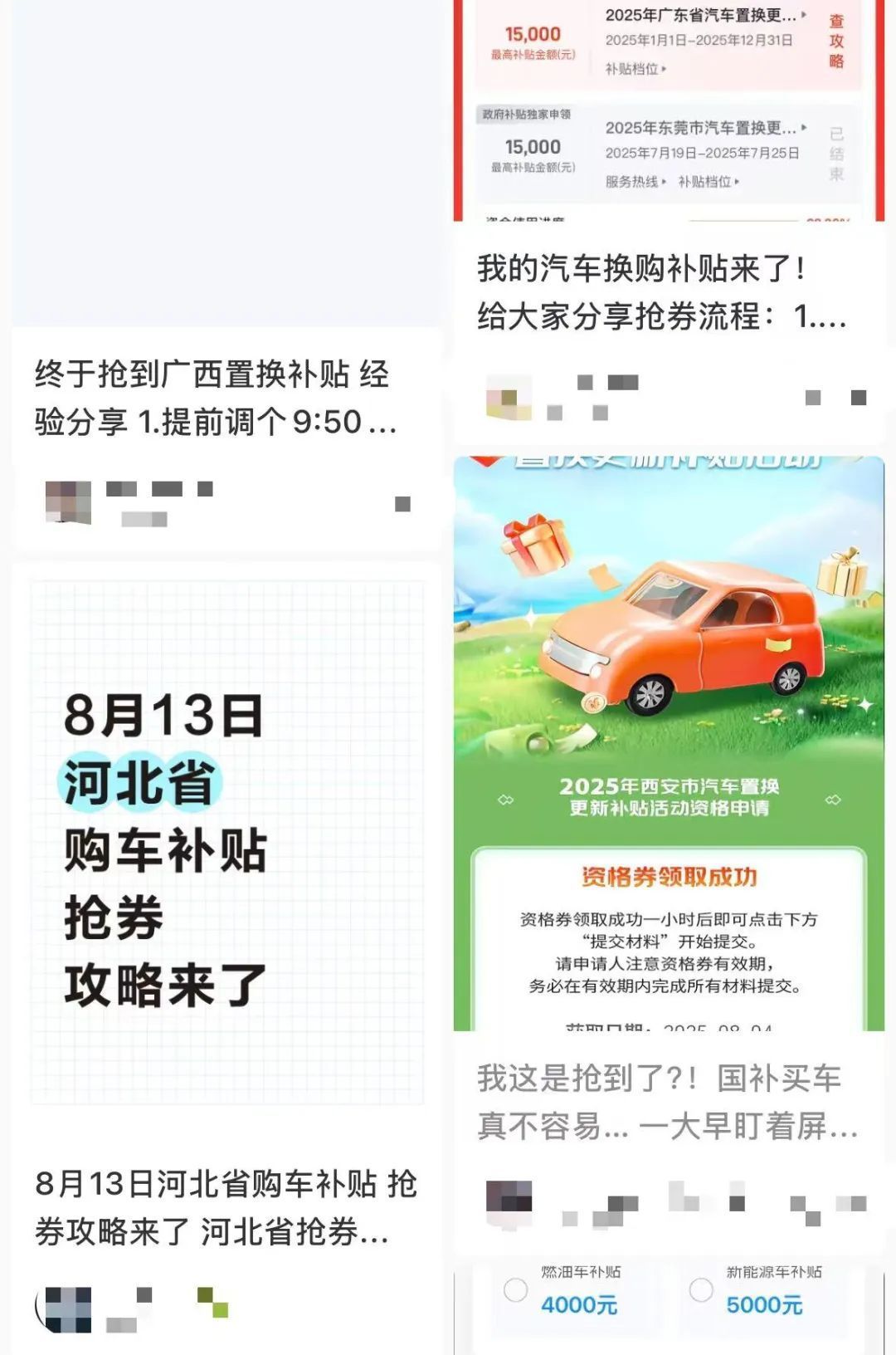 不少网友会在社交平台上分享汽车补贴抢券攻略截图自小红书