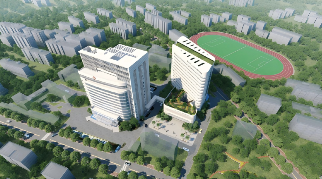 在建筑形态上,项目从岭南园林汲取设计理念,通过体量退台、内向庭院、灰空间、格栅立面等设计回应梁园历史肌理,打造出“层林叠翠、岐阁揽胜”的医疗建筑形态。此外,新老院区以连廊衔接,形成“急慢分治、协同共享”的高效就医网络,显著提升运营效率与患者体验,为市民群众营造舒适、放松、专业的就医体验。