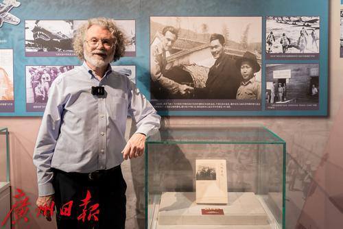 美国飞虎队飞行员唐纳德·克尔中尉之子戴维·克尔在“万里同心”华侨抗战专题展现场留影。