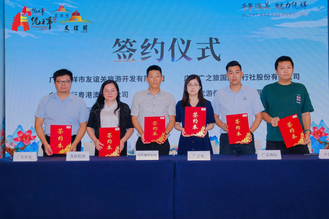 在合作签约环节,广西凭祥市友谊关旅游开发有限公司分别与广州广之旅国际旅行社股份有限公司、广东省中国青年旅行社有限公司、中旅旅行粤港澳区域公司、广东洲际国际旅行社有限公司、广州优游假期旅行社有限公司等五家企业达成合作,预计将为凭祥引入更多大湾区客源。