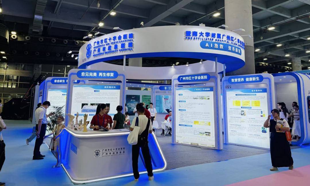 记者看到,在广州市红十字会医院主题展区中,烧伤整形科、骨科、康复医学科、神经内科、临床营养科、急诊医学科参与主题展示。