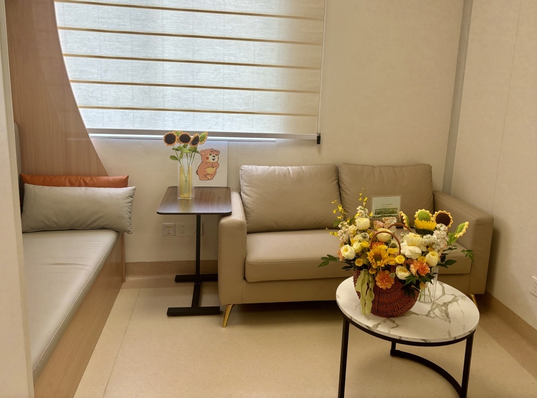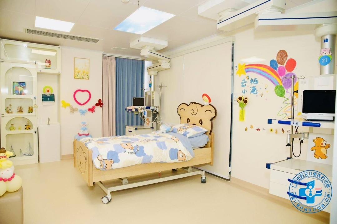 云朵灯、小熊床、个性化窗帘,家属休憩区还有沙发和小床……位于广州医科大学附属妇女儿童医疗中心(以下简称“广州妇儿中心”)PICU一隅,一个温馨的儿童安宁舒缓病房——“云栖小港”于2025年8月22日正式启用。