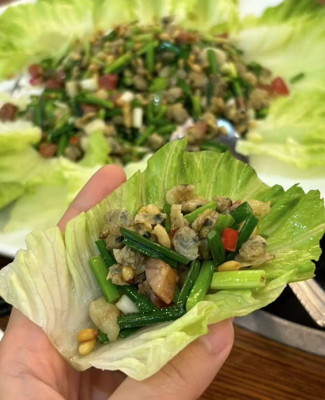 新鲜蚬肉现炒,个个饱满爆汁!用脆脆的生菜一包,蚬肉的鲜甜和生菜的清爽在嘴里炸开,又鲜又解腻!简单又过瘾的吃法,鲜味加倍,清爽翻倍。夏天来一份,爽脆鲜甜一口get!