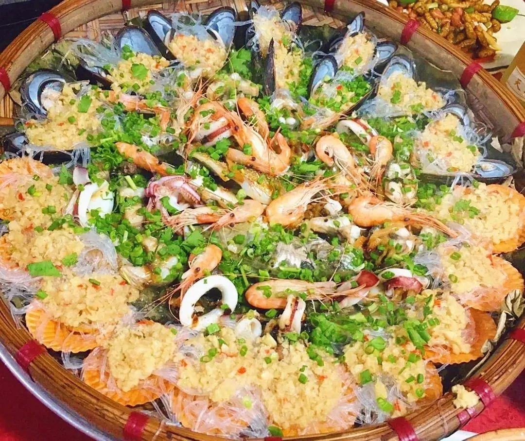 簸箕拼盘包含了青口、河虾、扇贝、鱿鱼圈等分量够足,香味浓郁!