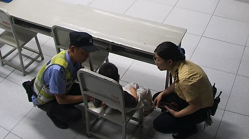 当天9:30左右,在同福西站A口安检点,一名热心女乘客找到正在值勤的安检员侯恒凤反映,有一名不认识的小男孩独自一人跟着她下了扶梯,并进了车站,女乘客发现后,便把他引到安检点处找工作人员。侯恒凤立即上报车控室,并将小男孩带到车控室前,值班站长陈燕纯接报后迅速出来接应。“小弟弟,你叫什么名字呀?爸爸妈妈呢?”陈燕纯牵过小男孩的手温柔地问道。由于年龄小,面对陈燕纯的询问,小男孩懵懵懂懂表达不清,于是陈燕纯暂时将小男孩带到车控室,并联系驻站辅警协助,辅警随即报了民警。