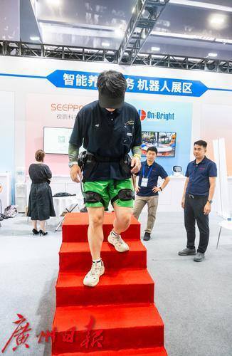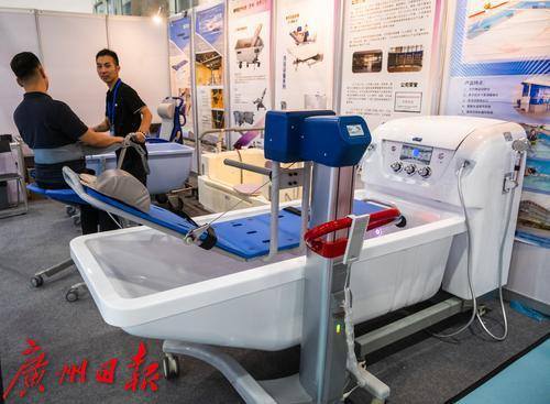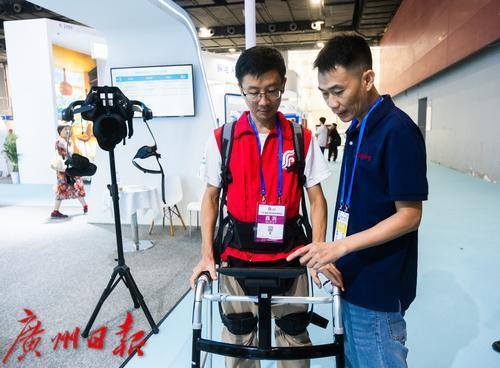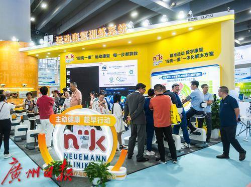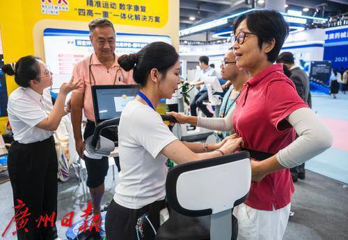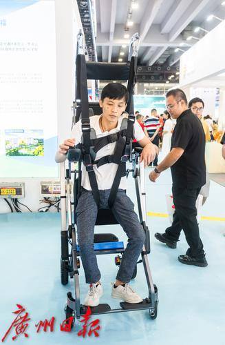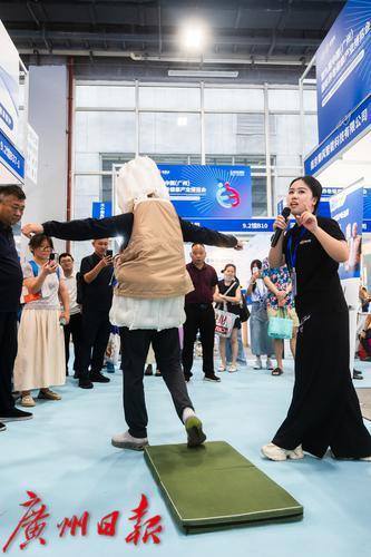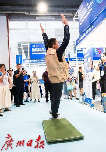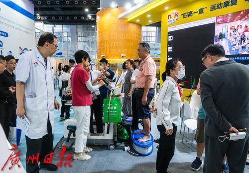 医疗健康产业展上,参观者体验运动康复训练设备。