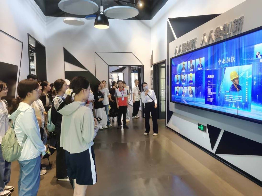 此次活动采用“实地调研+座谈宣讲”形式。当日一早,韶关籍大学生们统一乘车前往韶钢产业园,参观了“钢铁大脑”智慧中心,感受智慧制造与高效集控的现代工业模式,还走进工匠空间和717风度书房,见证传统工业城市与绿色人文社区的有机融合。