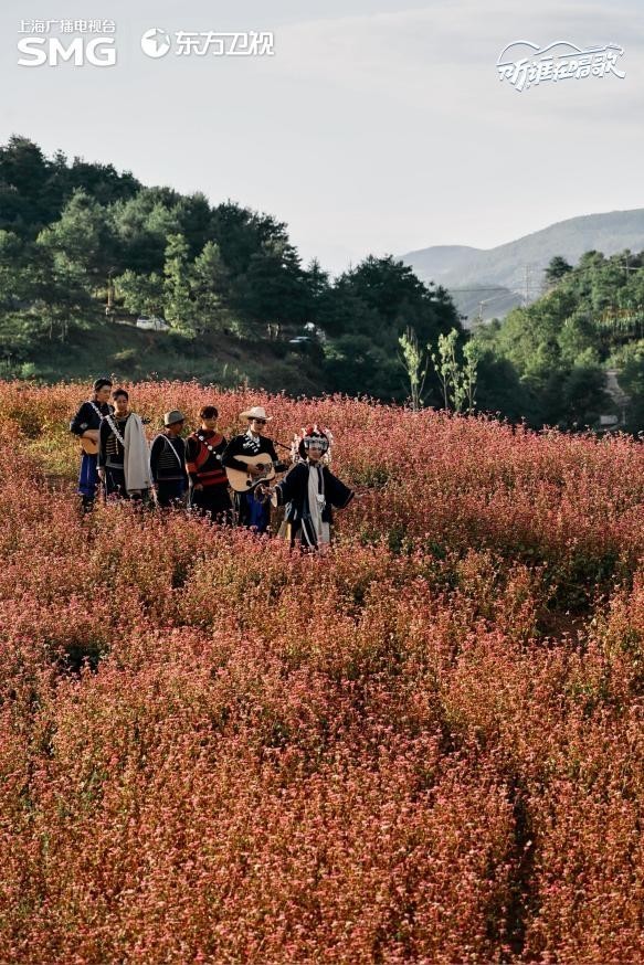 “彝族姑娘,她们就像花儿一样。”听完彝族年轻一代的故事后,于适想起了朴树的经典歌曲《那些花儿》。于是,在一片花海中,“寻乐团”改编演绎了这首歌,并在歌词中融入用彝族语言演唱的《不要怕》。“这首歌代表彝族姑娘的坚韧不拔。”莫西子诗说。