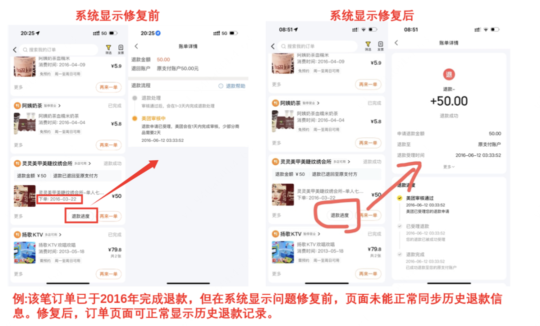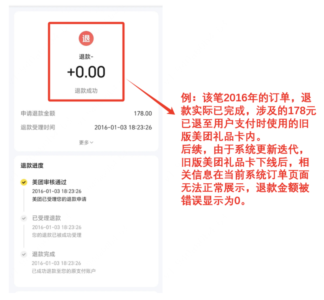 再如,有用户退款到账,但订单页面退款金额显示为零。说明中解释称,此问题为系统信息更新错误导致,用户可以通过原支付渠道查询到相关账单记录。