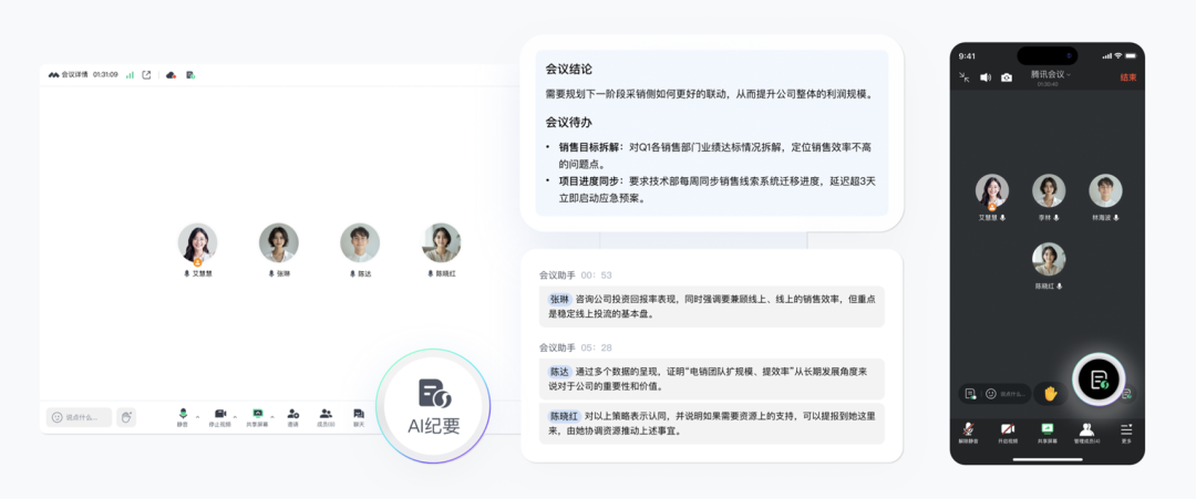 具体来看,传统会议中,手动记录容易遗漏信息、全文转写有大量冗余信息、会后整理相对耗时且滞后。针对这一痛点,此次腾讯会议更新的“AI纪要”不仅做到了输出速度快,同时保证内容精炼、准确。