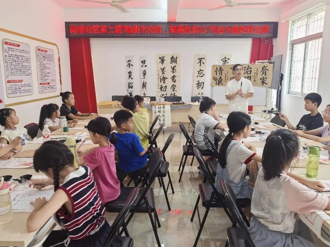 社区联合芳村小学南漖学校和东沙街“双百”社工站共同开展“民间小林长”课堂,引导青少年牢固树立“绿水青山就是金山银山”的生态理念;组织开展“翰墨书党情,笔墨绘初心”公益书法兴趣班,社区红色合伙人指导青少年们执笔挥毫,引导青少年透过爱国书法作品感悟家国情怀与红色精神。