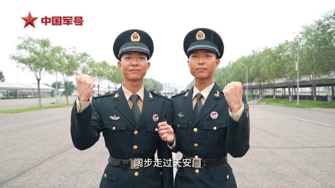 位于第4排面的“豪杰”兄弟顾宇豪、顾宇杰是一对双胞胎,一个是通信尖兵,一个是金牌号手,曾在2019年国庆70周年阅兵时并肩走过天安门。他们说,会以最昂扬的姿态阔步走过天安门!一起期待他们的亮相~
