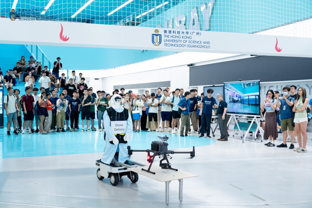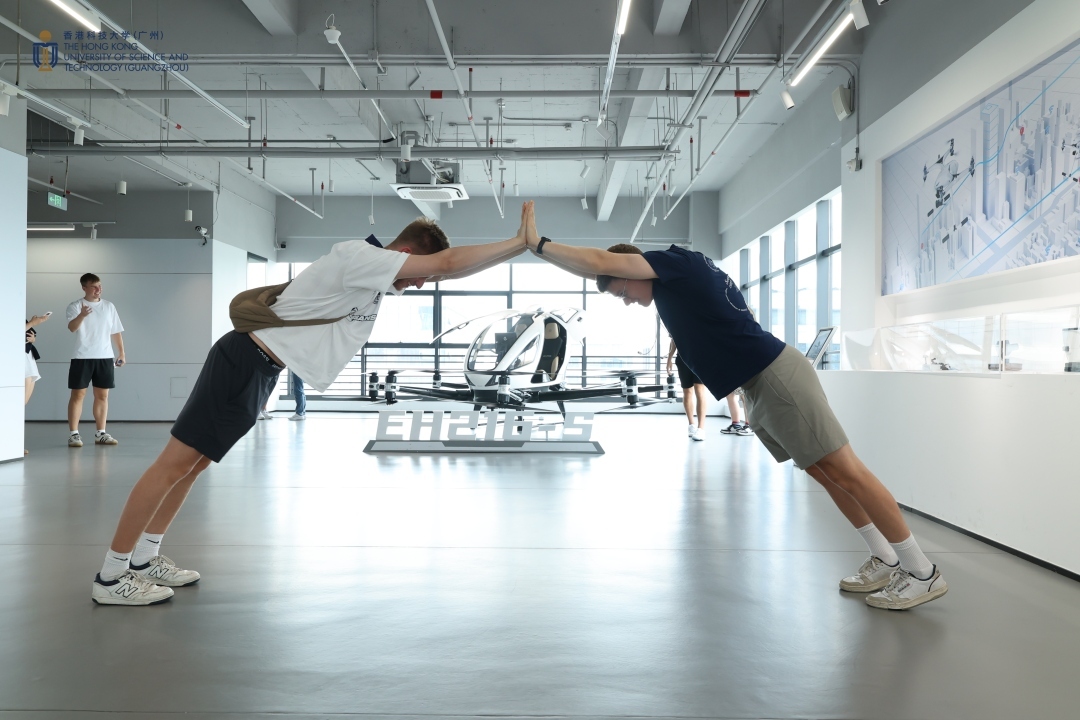 8月13日,港科大(广州)校园内处处可见中外学子热烈交流的场景。在Highbay空间内,阶梯上坐满了学生,他们目不转睛地围观无人机精准起降,惊叹声中纷纷举起手机拍摄记录,并与教授积极互动。融合AI艺术创作与大空间扩展现实(XR)的艺术展览、智能自动驾驶技术中心、先进的3D建模车间……这些前沿科技场景,让营员们得以沉浸式体验广州“新质生产力”。