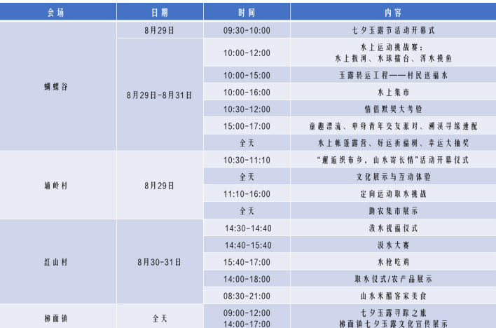 8月29日-31日,梯面镇开展七夕玉露文化宣传展示与七夕玉露寻踪之旅,将制作并发布详细取水点地图,游客可骑行、租车或自驾前往不同取水点,亲手挹取被当地奉为“神奇之水”的七夕玉露,深入了解梯面镇独特的七夕文化与客家民俗背景。