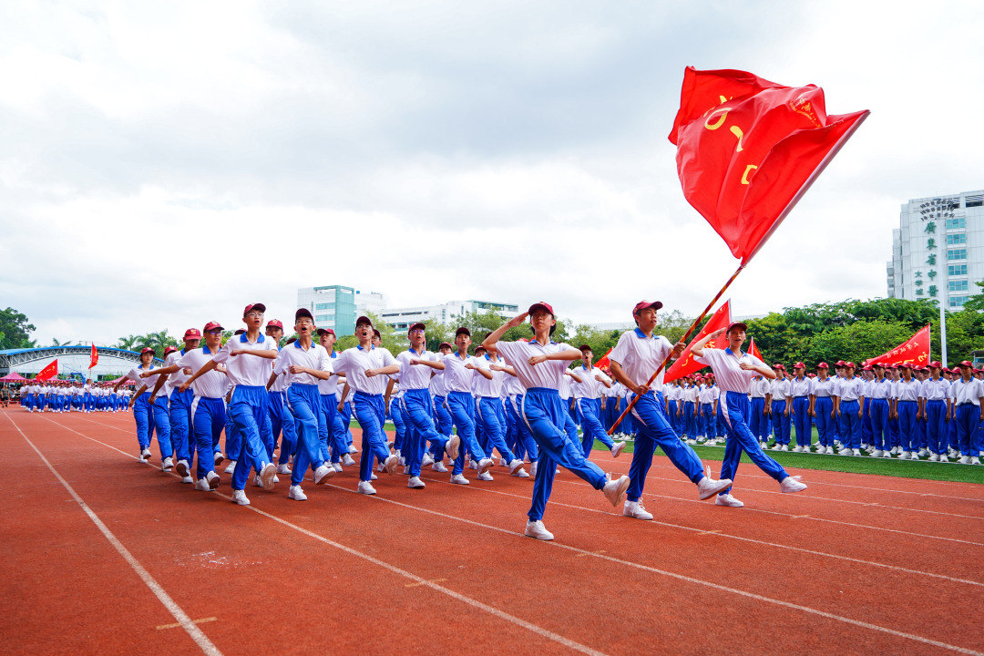 日前,广大附中2025级新生入学教育暨国防教育汇报活动在该校大学城校区田径场隆重举行。上午十点半,伴随着国歌,2025级新生入学教育暨国防教育汇报表演正式拉开序幕。