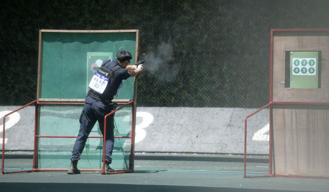 在手枪快准射击科目,广州市公安局特警支队四大队大队长黄栋君斩获了第一名。“所有的本领都是用汗水换来的。”他说,“我们希望通过训练比赛,增强自身本领,更好地服务广州社会治安大局,护航十五运会。”