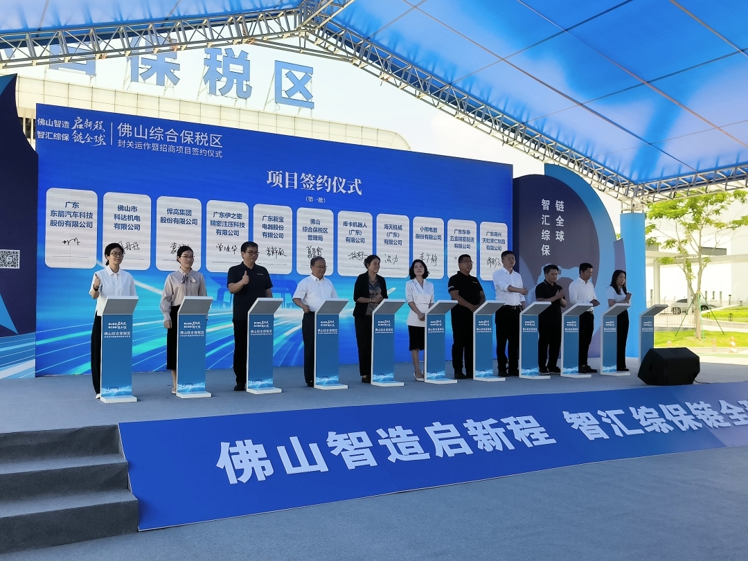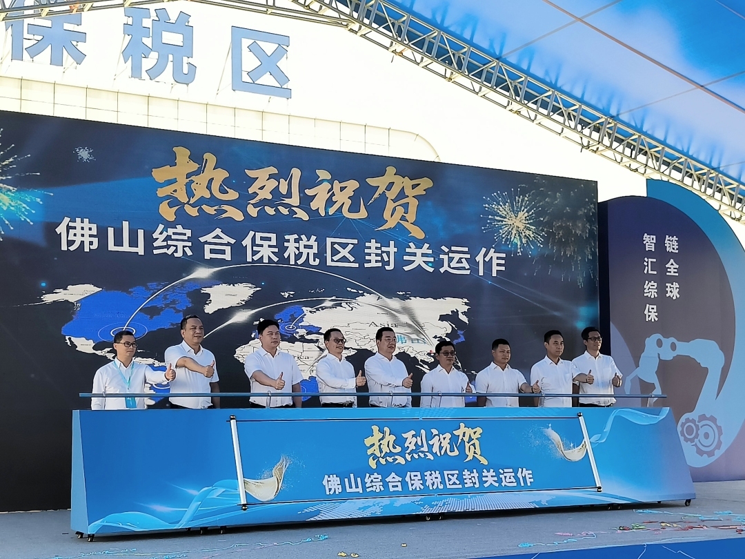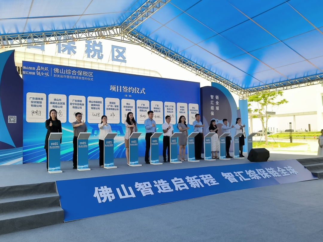 从申报建设到验收通过,从蓄势待发到全面启航……8月27日,“佛山智造启新程 智汇综保链全球”佛山综合保税区(简称“佛山综保区”)封关运作暨招商项目签约仪式举行。随着巨型LED屏数字从“3”逐秒递减至“1”,佛山综保区卡口闸机应声开启,标志着佛山市首个国家级开放平台正式投入运营。