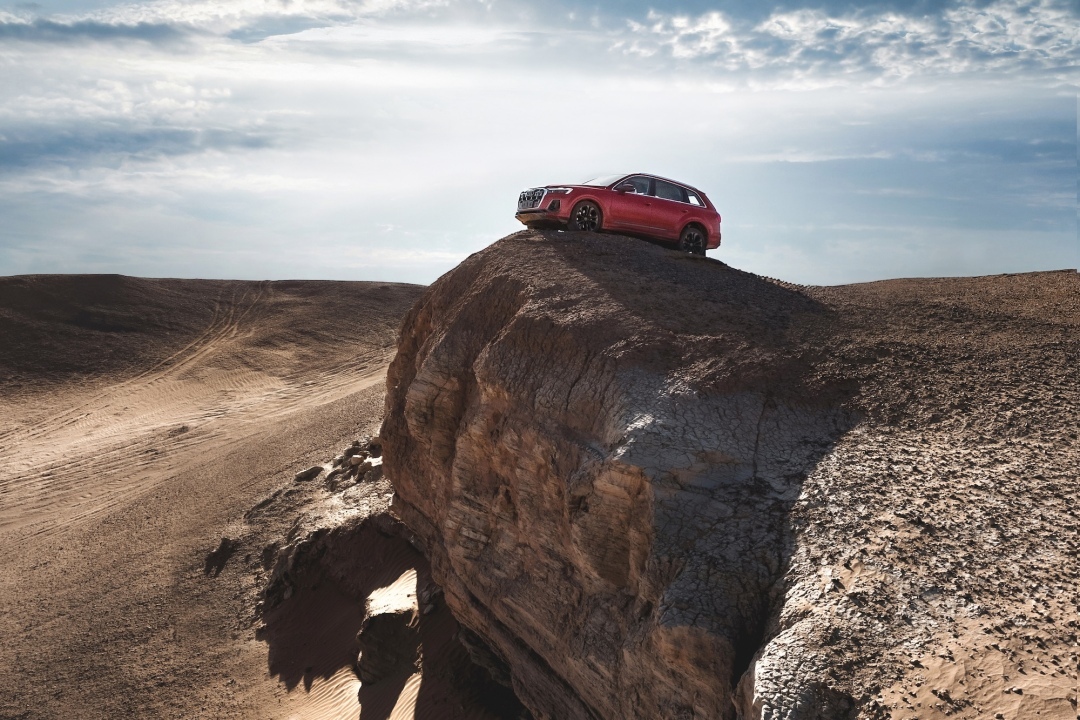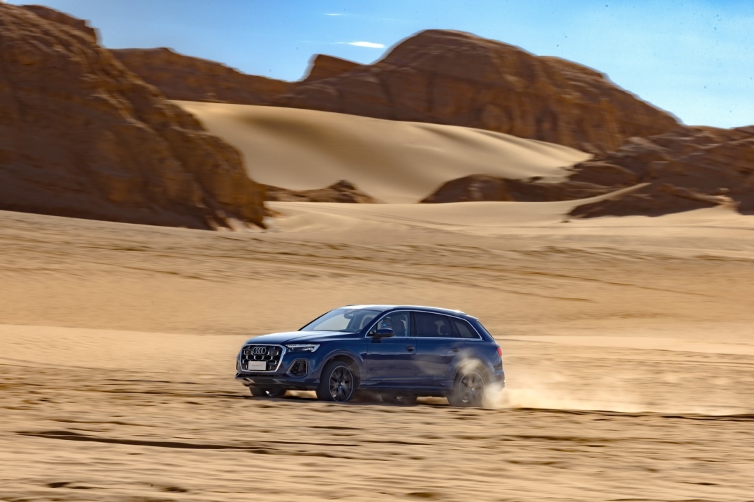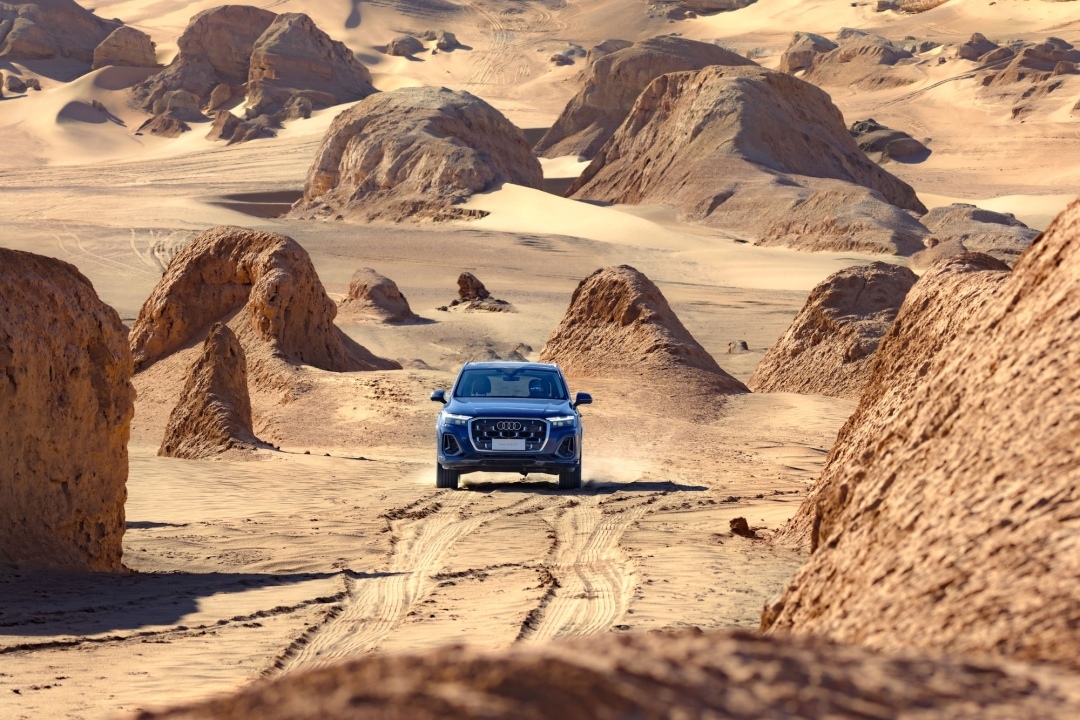 面对傲日尖贡玛沙漠的细软沙质和45度“刀锋沙脊”,新奥迪Q7、新奥迪Q8和新奥迪SQ7配备的具“品牌技术图腾”的纯机械扭力自锁式中央差速器quattro全时四驱系统,正是到了用武之地——在极限情况下,系统可将最多70%的扭矩传输给前轴,或最多85%的扭矩传输给后轴,带来全场景下的强大脱困性能。