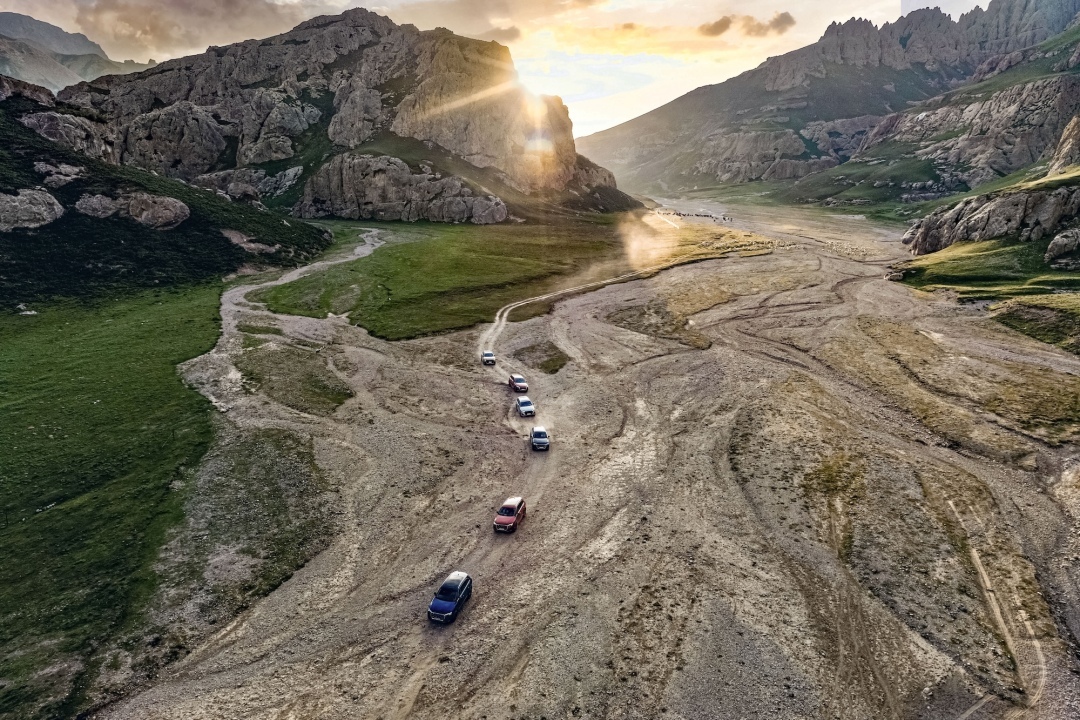 青藏高原腹地的天峻石林,是3.5亿年前形成的喀斯特奇观,仅比车身宽20厘米的颠簸路段,考验着车辆的灵活性与稳定性。此时,三款车型标配的自适应空气悬架与全轮转向系统成为达成此次“历练”的关键:空气悬架可根据路况动态调节90mm离地间隙,碾过岩石颠簸时自动升高,保障通过性;全轮转向系统在低速时让后轮转动5度,大幅缩小转弯半径,即便连续迂回穿行,车身仍如“贴地飞行”般稳定。