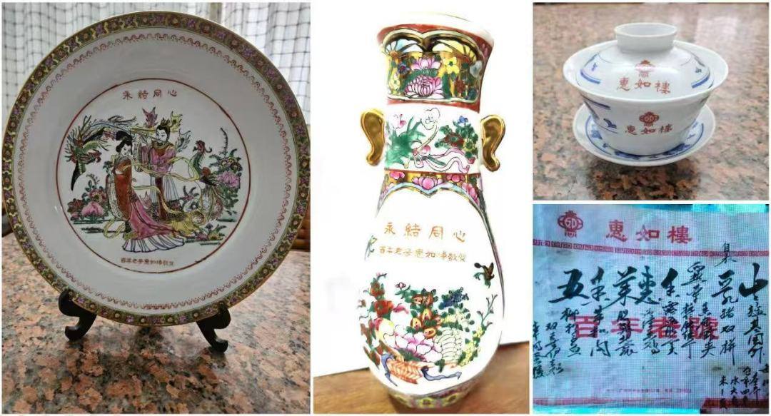 他们的到来,本身就是对“惠如精神”薪火相传的最好诠释,也为新生的惠如楼送上了最深情的祝福。看着焕然一新的茶楼,老人们的脸上写满了欣慰与期待。尤为珍贵的是,几位老员工还展示了珍藏多年的惠如楼历史“见证物”:其中包括原惠如楼为庆贺新人结婚宴而特别定制的广彩瓷器(瓷碟与瓷瓶),图案喜庆吉祥,承载着老茶楼对顾客的浓浓祝福;还有当年用于冲泡功夫茶的经典焗盅,仿佛还氤氲着旧日的茶香;更有一份原惠如楼营业部主任亲笔书写的、用于婚宴等重要宴席的毛笔手写菜单,笔力遒劲,记录着当年的讲究与用心。这些饱含岁月印记的老物件,无声地诉说着惠如楼的辉煌过往与独特待客之道,为新生的惠如楼赋予了厚重的历史温度,让跨越时空的传承有了生动的载体。