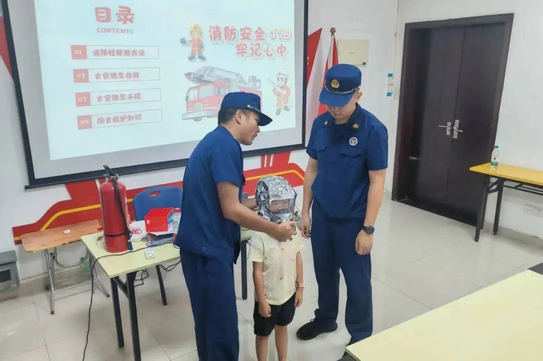 在“安全护航,禁毒同行”暑期安全教育课堂上,老师向孩子们系统讲解新型毒品的常见伪装形态,剖析毒品极具迷惑性的外观特征与潜伏危害,并通过真实案例警示其成瘾机制及法律后果。随后,消防员现场为孩子们演示手提式干粉灭火器“提、拔、握、压”四步操作规程,配合过滤式自救呼吸器进行实操演练,孩子们通过理论知识讲解结合实操,进一步提升了消防安全意识和技能,从小在心里埋下了安全的种子,让敬畏生命、防患未然的理念深深扎根。