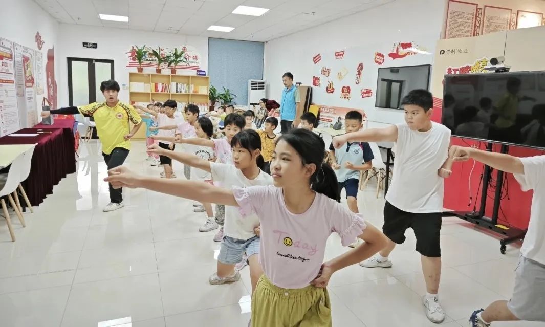 “马步、冲拳、摆臂——”在武术课上,来自蔡李佛武术的教练一声令下,20个孩子瞬间化身“武林萌娃”。虽然平均年龄不到10岁,但每个小朋友一招一式却有板有眼。教练把“抱拳礼”拆解成“感恩父母、尊敬师长”的小故事,让孩子们在汗水中学会礼仪与坚持。“原来扎马步这么酷!”“我回家要和爸爸对练!”孩子们围着教练七嘴八舌,大家表示意犹未尽。