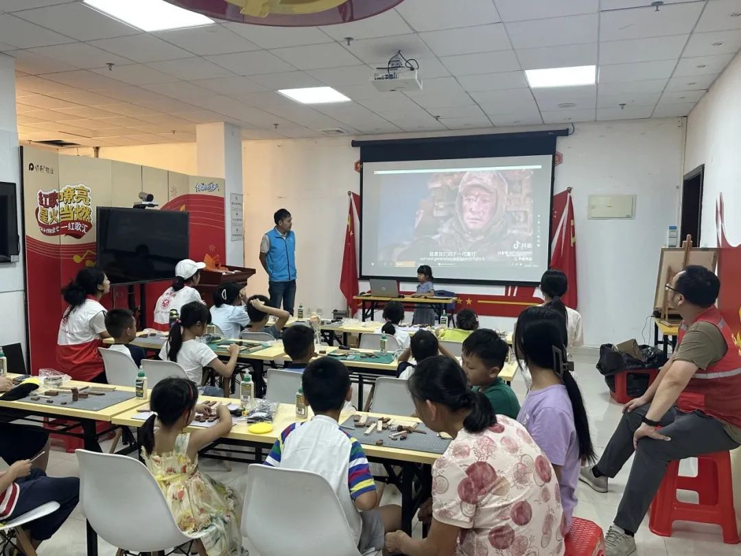 在“匠心传承,木趣横生”非遗木工课堂中,孩子们通过观看爱国短片和聆听退役军人讲述亲身经历的惊险故事,沉浸式感受家国情怀。党员志愿者也结合自身经历,生动讲述参军初心、军营中的锤炼成长以及身为党员的使命担当,以鲜活真实的故事,在孩子们心中悄然播下“从军报国”的梦想种子。