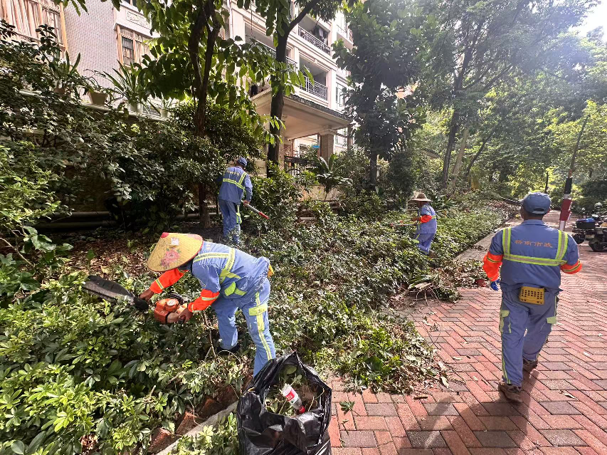 不仅如此,队伍还帮各村居清理居民楼楼顶、楼梯间的积存垃圾、积水器皿,修剪过密的绿植。8月至今,1300余人次投入行动,清理各类垃圾300余吨,修剪灌木植物4.6万平方米,清走过密植物枝条、杂树100余吨,蚊虫没了藏身地,大家出门更安心!