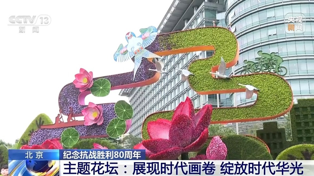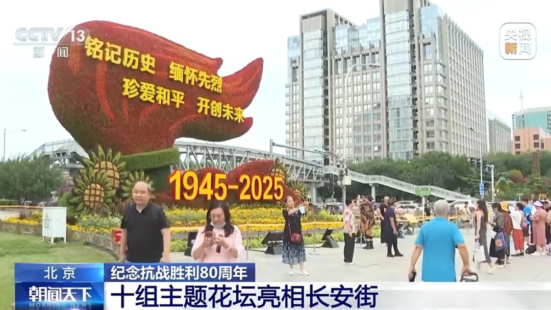 10组主题花坛亮相长安街沿线纪念抗战胜利80周年。图/央视新闻