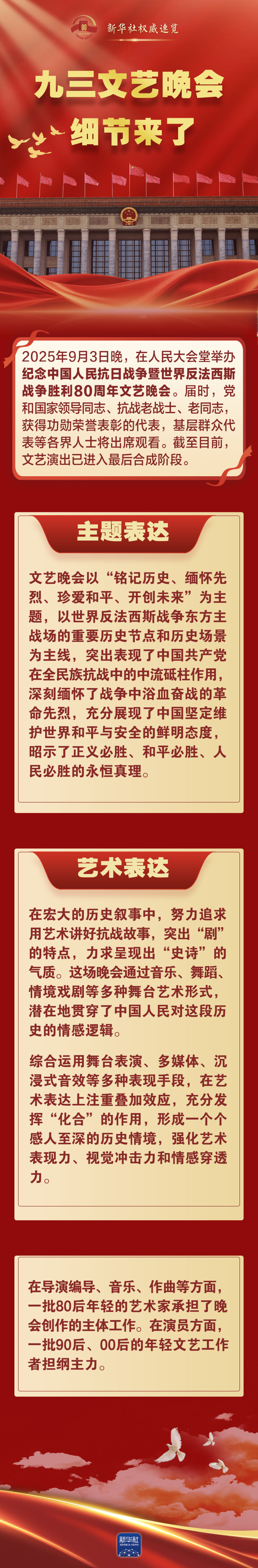 ▌9月3日晚将举办抗战胜利80周年纪念活动文艺晚会