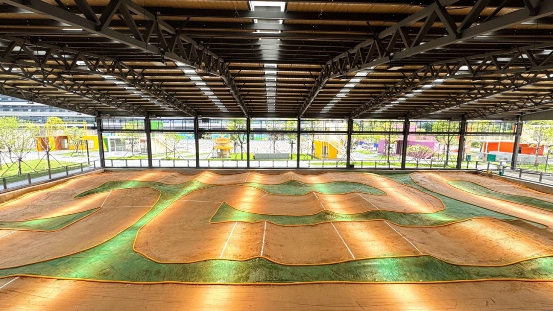 宏宇·GDC共设有三大专业赛道,包括3300平方米的柏油沥青RC国际主赛场、1300平方米的下沉式粘土泥地越野场,以及1000平方米的硬地多功能竞技场,并配有趣味攀爬区。赛场创新设计三层式观赛控制区,抬升操作台等,更配备完善的配套区域,如引擎启动区、洗车区、吹车区、车手备赛区、车队观赛室、会员观赛室及展销中心,可充分满足专业赛事举办、训练体验与产业展示等多元化需求。