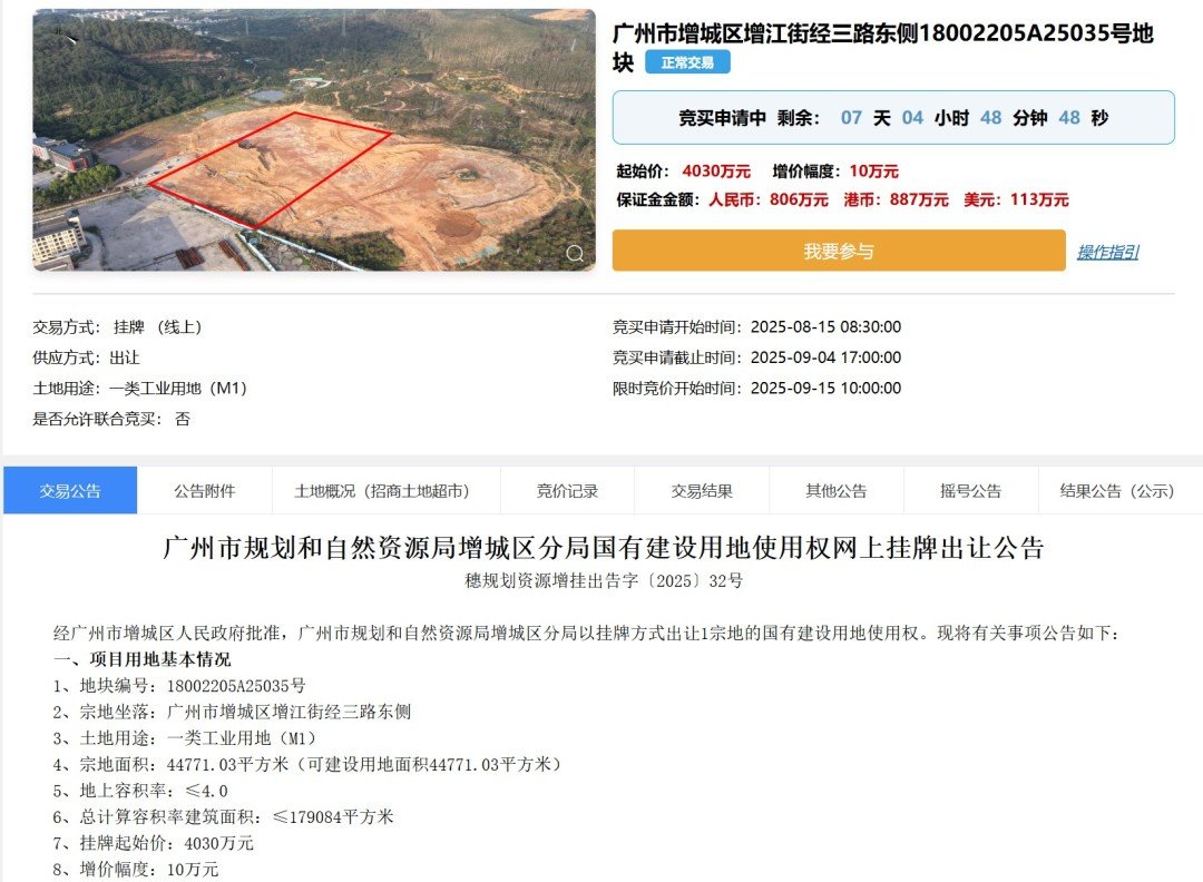 为了优化产业空间布局,为实体经济高质量发展注入新动能,近日,增城一口气挂牌多宗工业用地,聚焦新能源、低空经济、新型材料、食品制造等重点产业领域,均在9月出让。