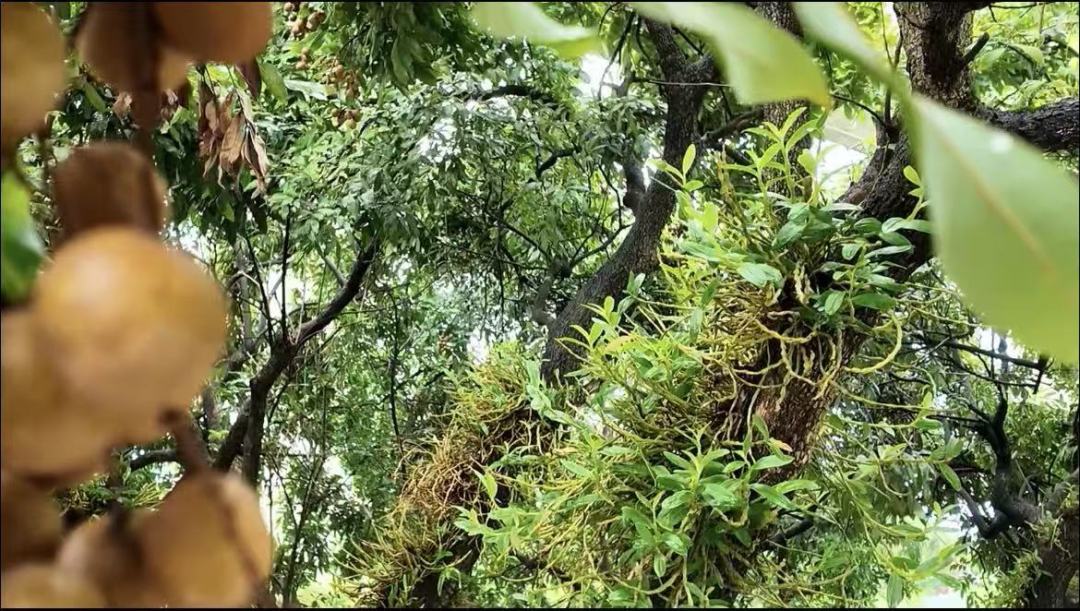 注:由于每棵树上长满石斛,果园不开放自由采摘,只能现场参观或购买。