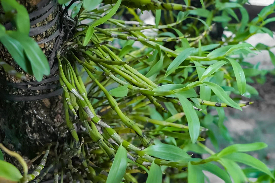 为引进合适的石斛品种,李志伟曾多次深入云南地区寻找野生铁皮石斛。最终,他引进了矩唇石斛并“捆绑”在龙眼树树干上,让石斛依靠自身根系吸收树干中的营养,最大限度还原野生状态。经过多年尝试,“龙眼+石斛”的立体栽培模式取得了成功,农户也获得了额外收益。