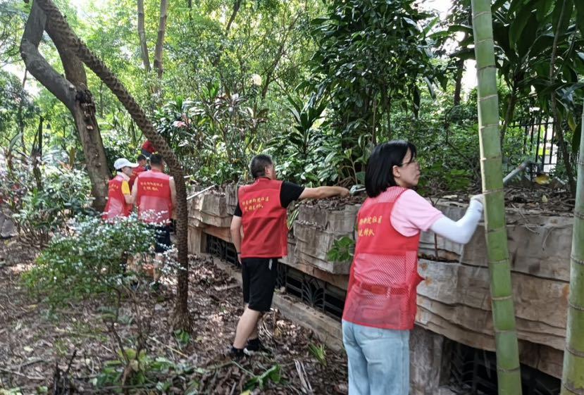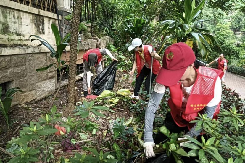 清——深度清洁,拔除“卫生顽疾”, 社区工作人员带领“锋速队”党员与在职党员对绿化带、卫生死角展开地毯式清理,清运枯枝落叶。绿化垃圾及杂物累计17吨,铲除蚊虫孳生温床。