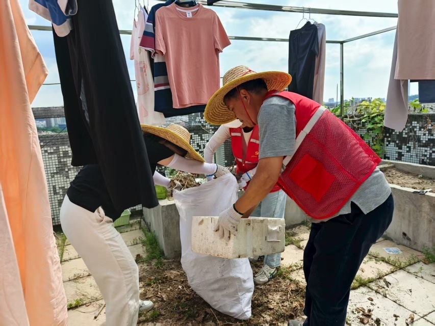 “这些瓶瓶罐罐最易积水生蚊,必须清理干净!” 一名网格员一边向村民解释,一边清理天台上闲置的花盆、轮胎等杂物。在网格中心统筹下,网格员与志愿者组成入户小组,敲门提醒居民清除家中积水,并派发传染病防控宣传单张。“不少群众意识较强,但部分隐蔽角落仍需专业人员提醒协助。” 该网格员表示。