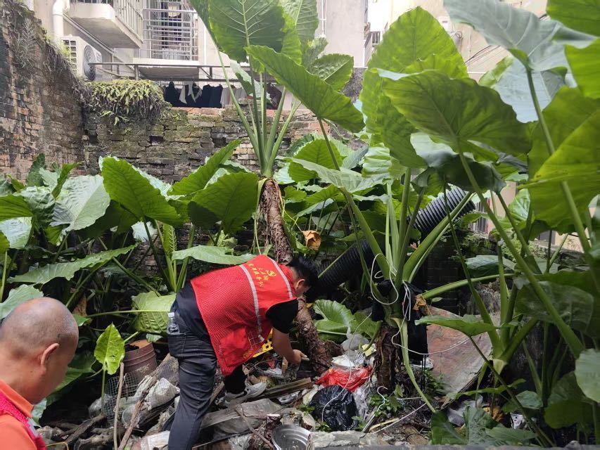 在番禺区桥南街,御院社区工作人员、街道支援人员、“锋速队”党员、物业工作人员、街道市政队等200余名力量一起行动,坚持“以清为主、以灭为辅、清源截流”的原则,围绕“剪、翻、清、宣”四大环节精准发力:
