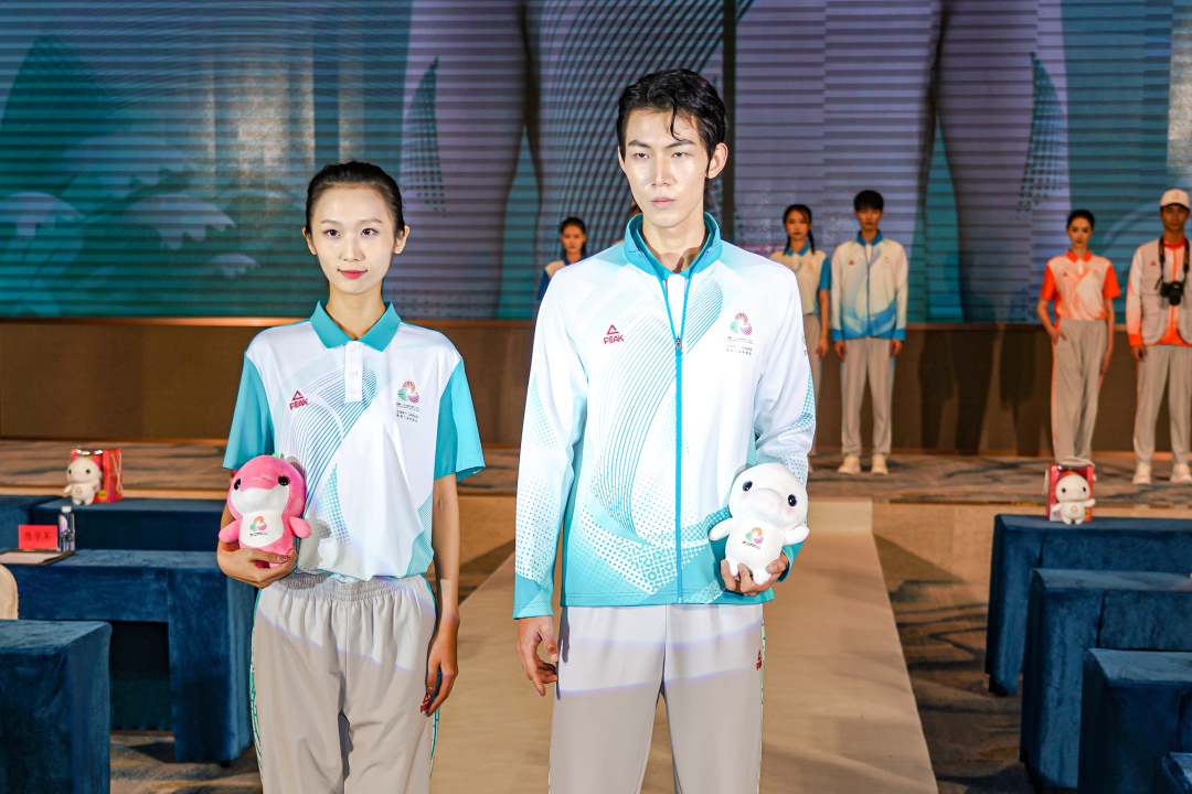 现场还进行了服装展示,身着各色服装的模特精神抖擞,向大家展示别样的设计。服装上,跃动的白海豚化身破浪前行的壮美象征,赛会装备不仅彰显粤港澳的文化底蕴,更诠释残特奥会的运动精神,铸就装备性能与人文关怀的完美融合。