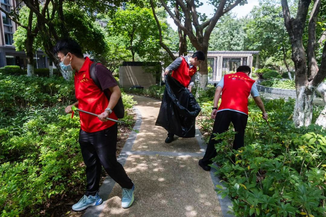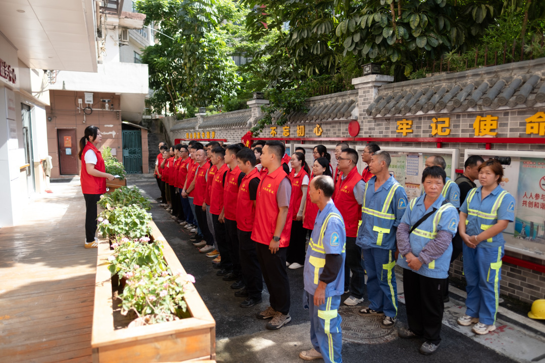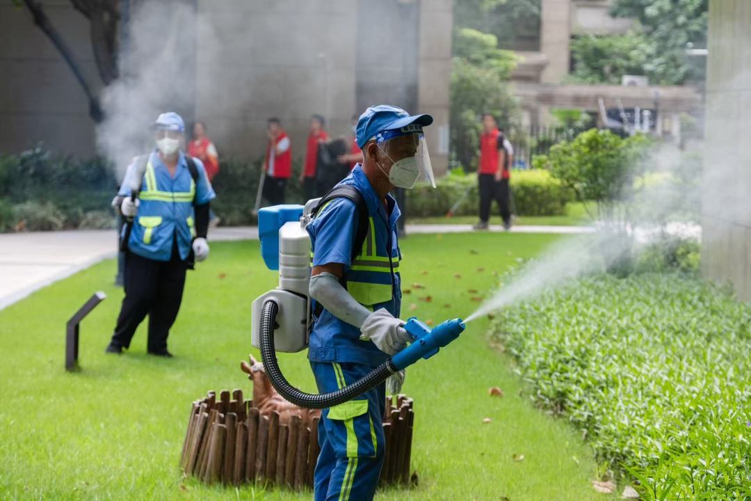 记者在云城街云山社区保利云禧小区看到,该社区辖内地铁设计院的党员志愿者分成几组,由刘晶晶及工作人员带领,深度清理公共绿地;多名环卫保洁人员开展蚊虫消杀,清扫花坛角落的积水,从源头上减少蚊虫孳生环境。